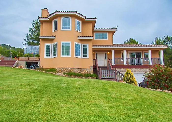 Villa Sitges Mas Mestre dysponuje tarasem z widokiem na górę, 35 min jazdy od lotniska Barcelona-El Prat. Willa oferuje basen, a także jacuzzi, aby zrelaksować się po męczącym dniu.